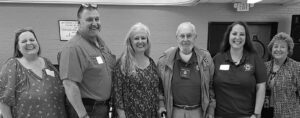 The Columbia District Ruritan Clubs of S.C. held its convention recently at Mt. Hebron United Methodist Church. The Ruritan Club is part of the National Service Organization which promotes fellowship, goodwill, and community service throughout cities and rural communities of America. At right, the 2024-2025 Columbia District Governor Ginger Hardee (of Sandy Run club) passes the wooden mallet to the new 2026 Columbia District Governor, Ross Snell (of Pineview Club in West Columbia). Above, The Pineview Ruritan Club was noted for having three generations present at the recent district convention. (L-r): second generation members Glenda Hardee, Gary Hardee, and 2024-2025 District Governor Ginger Hardee; first generation Forever Ruritan Herbert Geiger, and his granddaughter (third generation), district youth activity co-chairman Amber Hardee. Recognizing the family of three generations is National Director Debbie Davis. For more information, please visit Ruritan.org.
