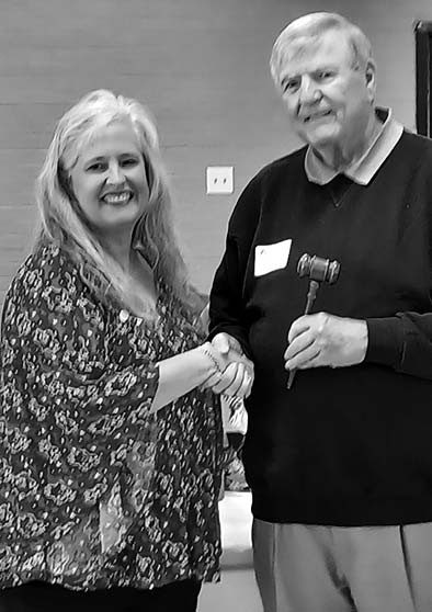 The Columbia District Ruritan Clubs of S.C. held its convention recently at Mt. Hebron United Methodist Church. The Ruritan Club is part of the National Service Organization which promotes fellowship, goodwill, and community service throughout cities and rural communities of America. At right, the 2024-2025 Columbia District Governor Ginger Hardee (of Sandy Run club) passes the wooden mallet to the new 2026 Columbia District Governor, Ross Snell (of Pineview Club in West Columbia). Above, The Pineview Ruritan Club was noted for having three generations present at the recent district convention. (L-r): second generation members Glenda Hardee, Gary Hardee, and 2024-2025 District Governor Ginger Hardee; first generation Forever Ruritan Herbert Geiger, and his granddaughter (third generation), district youth activity co-chairman Amber Hardee. Recognizing the family of three generations is National Director Debbie Davis. For more information, please visit Ruritan.org.