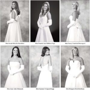 Guest debutantes were: Miss Sara Albritton Grimsley, escorted by Mr. Hughes Burton Ingram; Miss Barra Winn Jenkins, escorted by Mr. Henry Dixon Edens; Miss Mary Katherine Penninger, escorted by Mr. Andrew Mark Brown; Miss Lucile Milliken Sammataro, escorted by Mr. Joseph High Pope, Jr.; Miss Caroline Mynda Sanders, escorted by Mr. Merritt Lyles Brazell; Miss Caroline Evelyn Tinch, escorted by Mr. David Barnwell Shealy.
