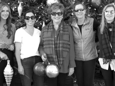 (L-r) Kim Toogood, Gretchen Hope, Columbia Garden Club president Rhoda Pachal, Christmas Tree co-chair Melissa Prickett, and Susan Prickett, along with other members of the Columbia Garden Club, decorated the 2025 State Christmas Tree located North Lawn of the State House, 1100 Gervais Street.